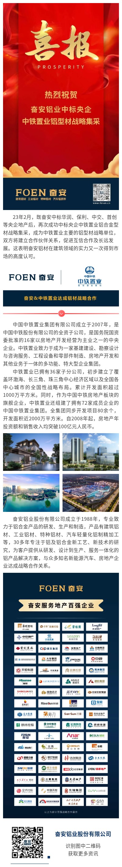 【喜報】奮安鋁業中標央企中鐵置業鋁型材戰略采集