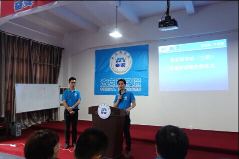 7月8日上午,當第一縷輕柔的陽光灑向大地,本次歷時六天的奮安商學院第三期暨營銷特訓營如期開展。奮安商學院執行院長黃秀華女士的開營演講給人啟發是良多的,她說,她是亮麗的,人走到哪里都要照亮別人。豹子的項鏈象征豹子的精神,虎的戒指代表虎的干勁,愛心手表時刻提醒自己做人要懂得感恩。幸福、家、責任、堅強、堅持,五個簡單的詞匯卻將難能可貴的“做幸福的奮安人”的精神展現給新一批的學員們。
