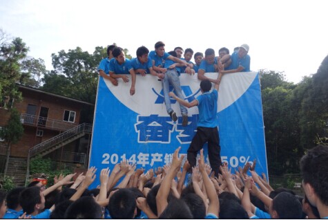 7月13日上午,在專業拓展訓練教練李教練的帶領下開始了奮安商學院特訓營必不可少的素質拓展。每一個簡單的游戲中都蘊含著深刻的道理。在“最強大腦”環節中,教練每次都會擺出不用形狀的撲克牌方陣,每次每個學員可翻的牌數不一樣,難度逐次增加。各小組學員們都認真參與,激烈地討論,有些小組進行了“鐘點式擺牌法”。令人印象深刻的要數特訓三隊的“紙幣模擬作戰法”,在地上用100元、20元、5元、1元擺出團隊成員所共同認可的方陣形式,這一模擬方法為他們最后取得勝利奠定了重要基礎。本環節結束后,李教練總結道,“首先,我們要懂得資源共享,講求共贏。其次,做事要運用正確、合適的方法,提高執行力。最后,不要在乎別人的做法、想法;關注自己,勇往直前。每個企業的產品都不一樣,要懂得進行具體問題具體分析。認真專注自己的工作,關注自己今天比昨天進步了多少,今年比去年提升了多少的業績,同時也要遵守團隊的規章制度。”下午的“驛站傳書”,讓我們看到了學員們的創新思維,體驗到理解溝通、時刻監督、不斷更正的重要性。在奮安商學院特訓營有一面每個人都要翻越的“畢業墻”,高三米八,一大群男生爭搶著在下面“打地基”,負責當梯子,讓其他學員踩在他們的肩膀上,緩緩地撐起他們,并成功安全地幫助學員們翻越畢業墻。當他們每一個人的肩膀被其他人踩紅,甚至被踩脫皮時,沒有一句抱怨,只是簡單的一句“這是我應該做,因為我們是一個團隊,是一家人。”翻越畢業墻不僅預示著在奮安商學院的順利畢業,而且更預示著在職場道路上學員們能迎難而上,勇攀高峰。
