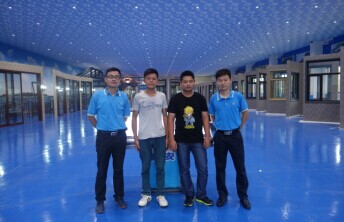 (我司銷售總經理助理與貴賓在奮安全國最大的門窗體驗中心合影留念)
