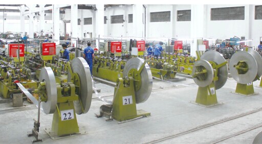 貴賓對我集團不銹鋼公司給予高度評價。 (不銹鋼公司生產車間現場)